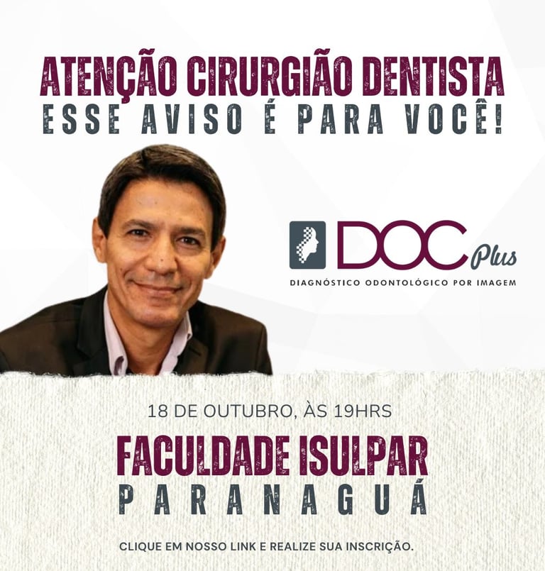 No dia 18 de outubro, às 19hrs, no Instituto Superior do Litoral do Paraná - ISULPAR em Paranaguá, ocorrerá uma palestra imperdível sobre Gestão Empresarial em Odontologia com o renomado Dr. Fábio Guimarães (CRO 2795).